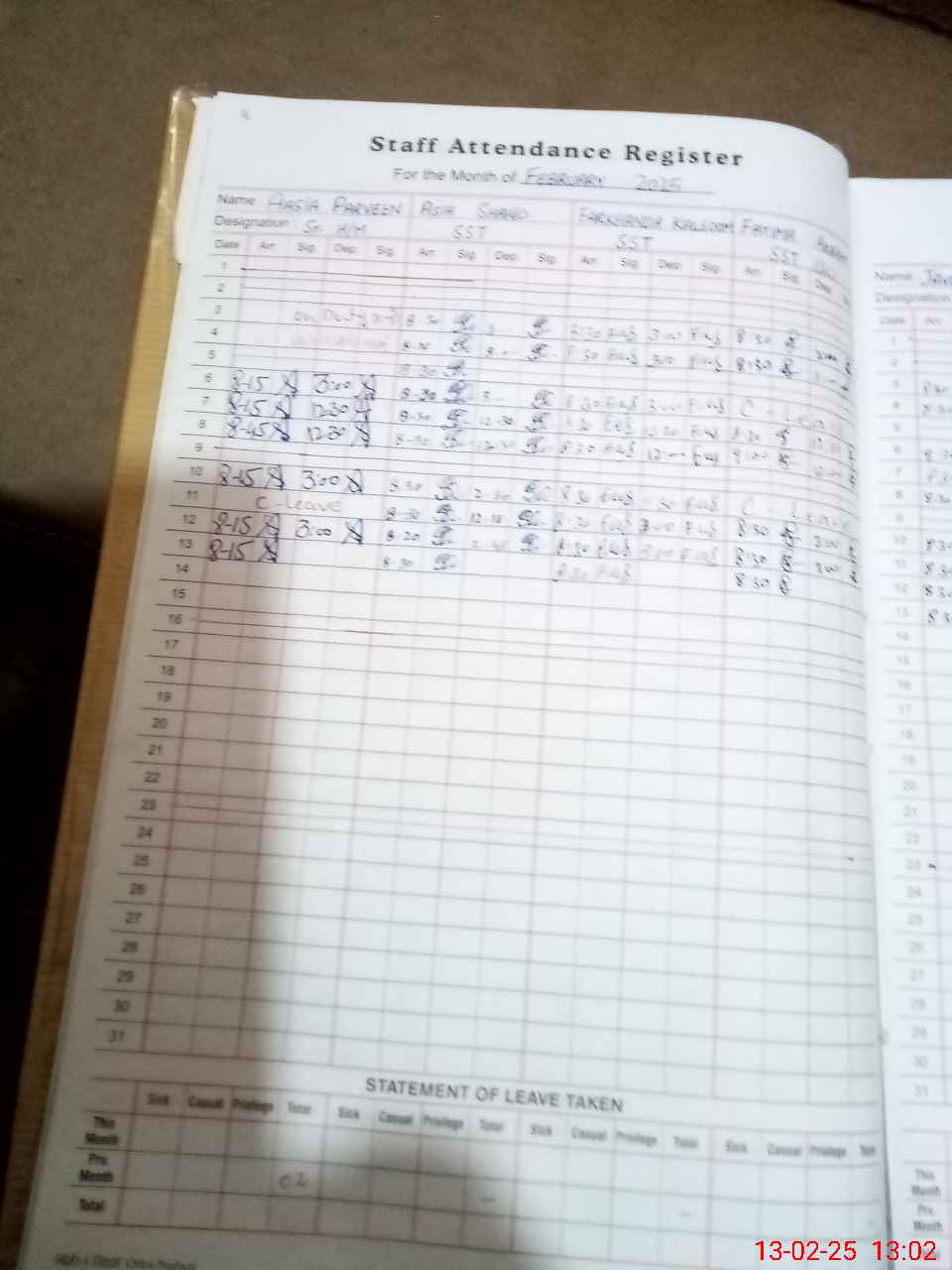 | Leave | Duty | Absent | Maternity | Medical | Ex- Pak |