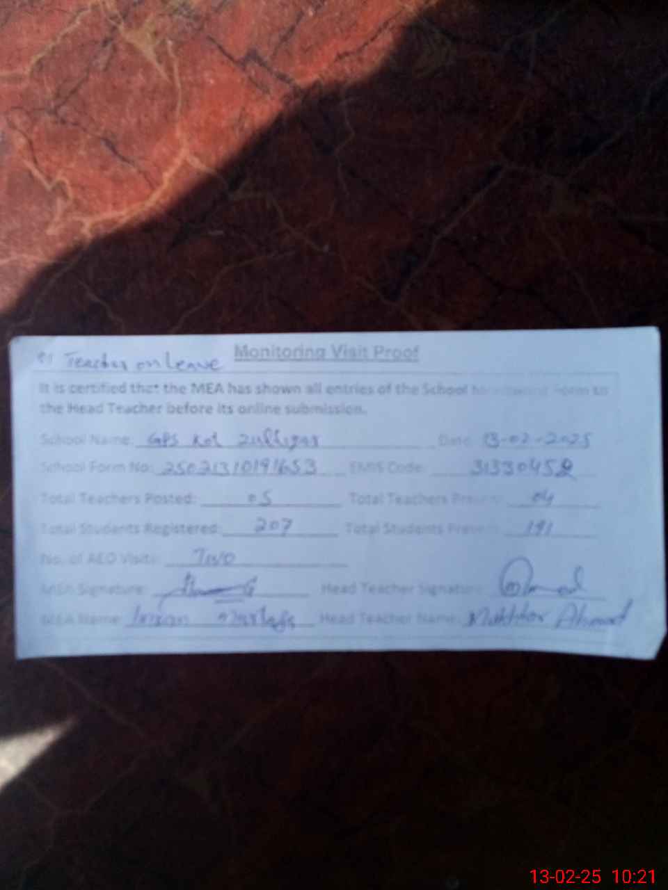 | EMIS Code: 31330452 | Name of School: GPS KOT ZULFIQAR | |||