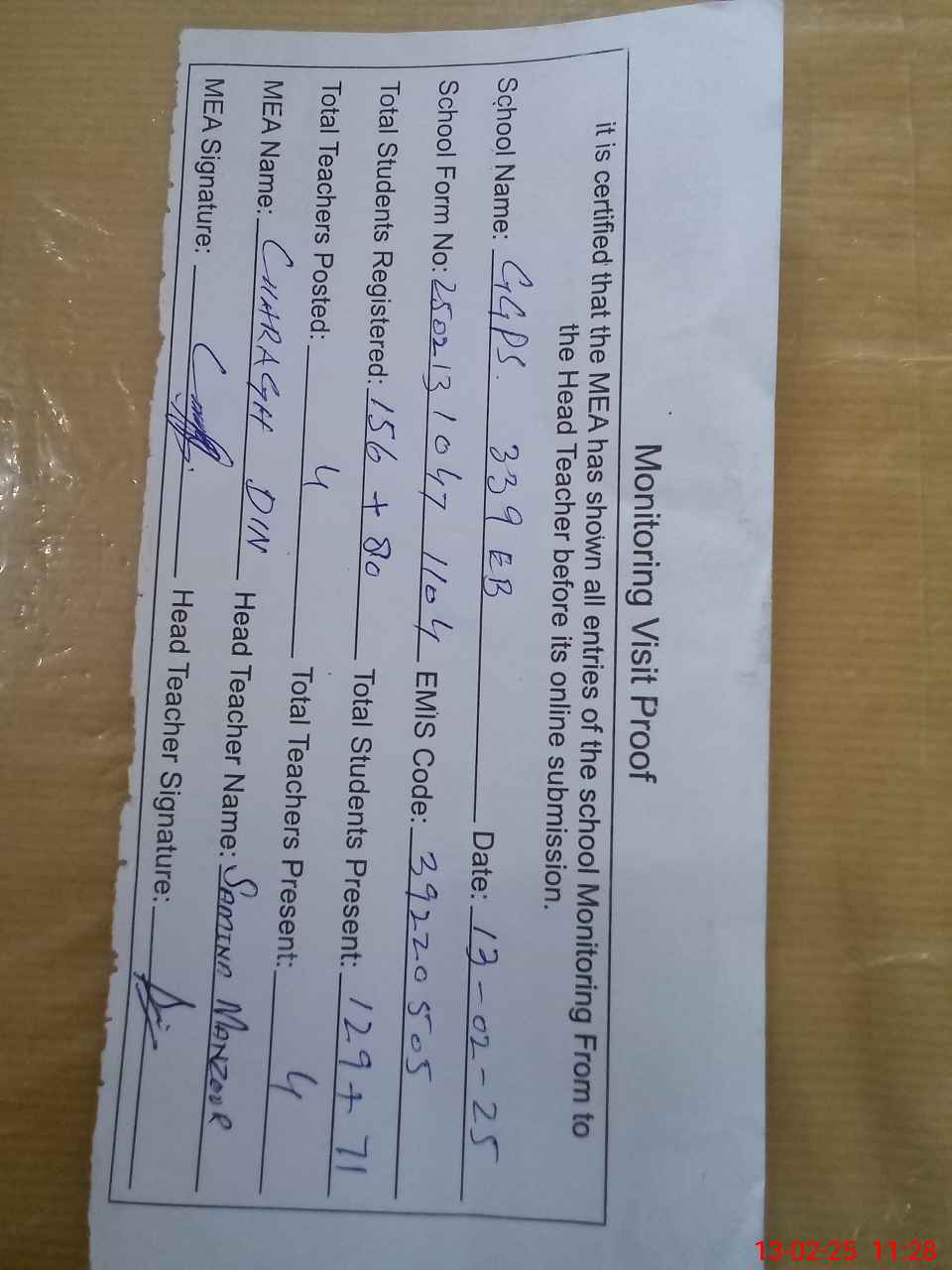 | EMIS Code: 39220505 | Name of School: GGPS CHAK NO.339/EB | |||