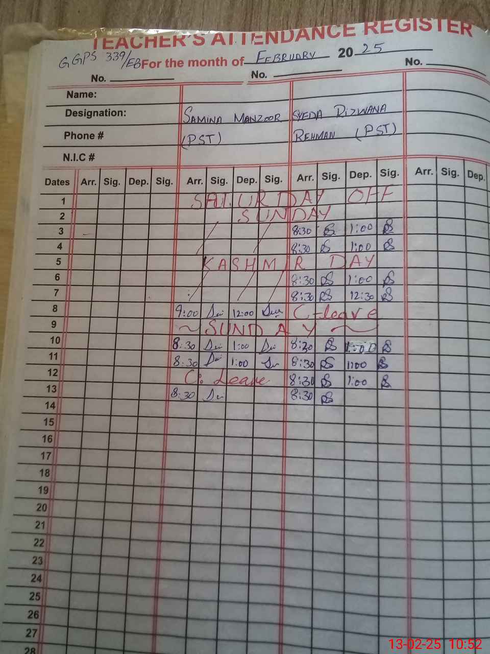 | Name: SA**** MA**** Designation: (School Headmaster's/Headmistress's) PST Phone/Cell Number: 03**** |