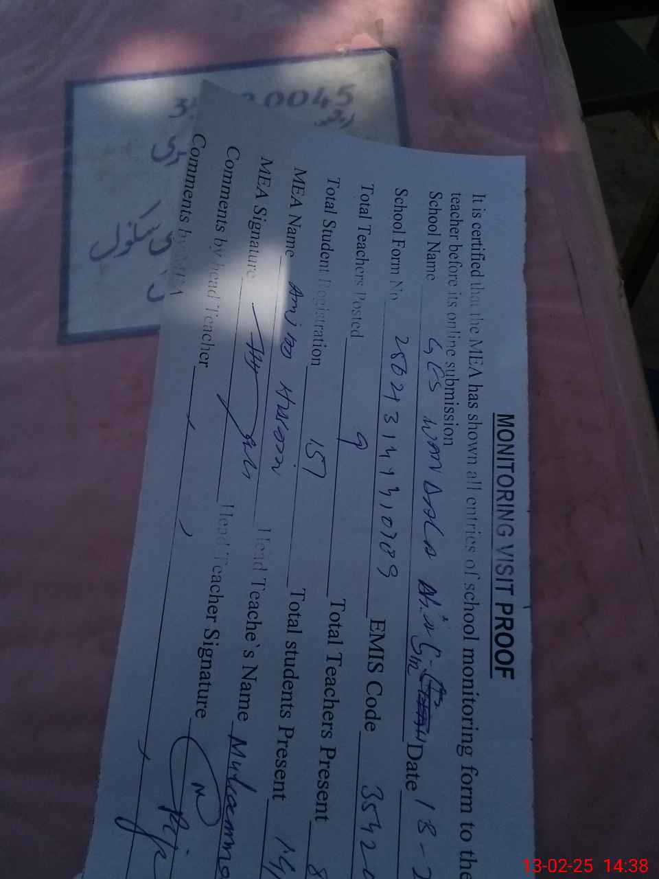 | Certified that this School was Inspected by the Undersigned MEA/DMO Today and the Information Stated Above is as Per Record. | |||||