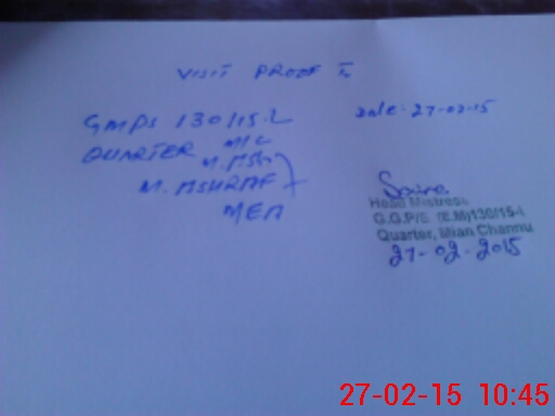 | EMIS Code: 36430313 | Name of School: GMPS 130/15-L QUARTER, MIAN CHANNU | |||