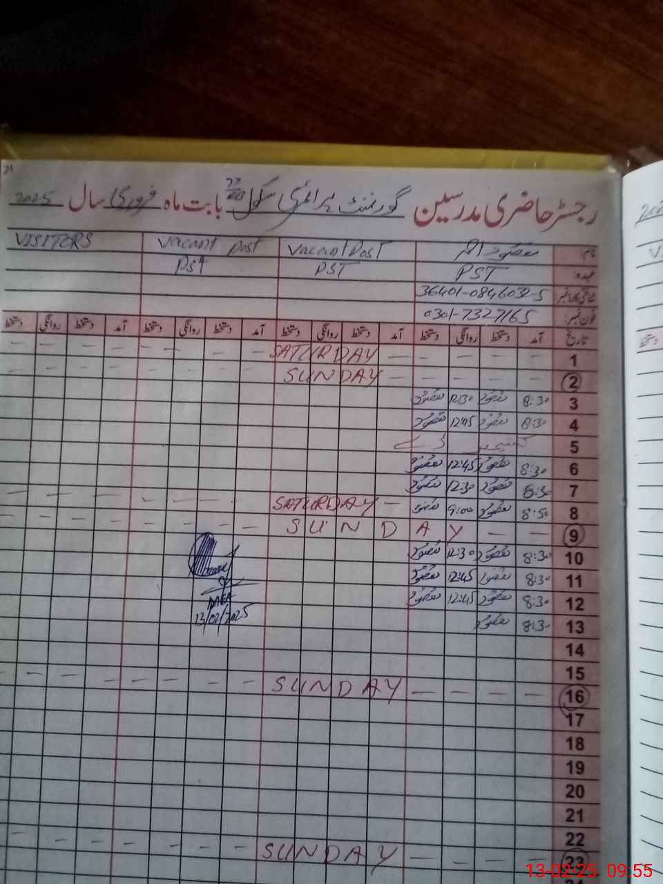 | Name: MA**** AH**** Designation: (School Headmaster's/Headmistress's) PST Phone/Cell Number: 03**** |