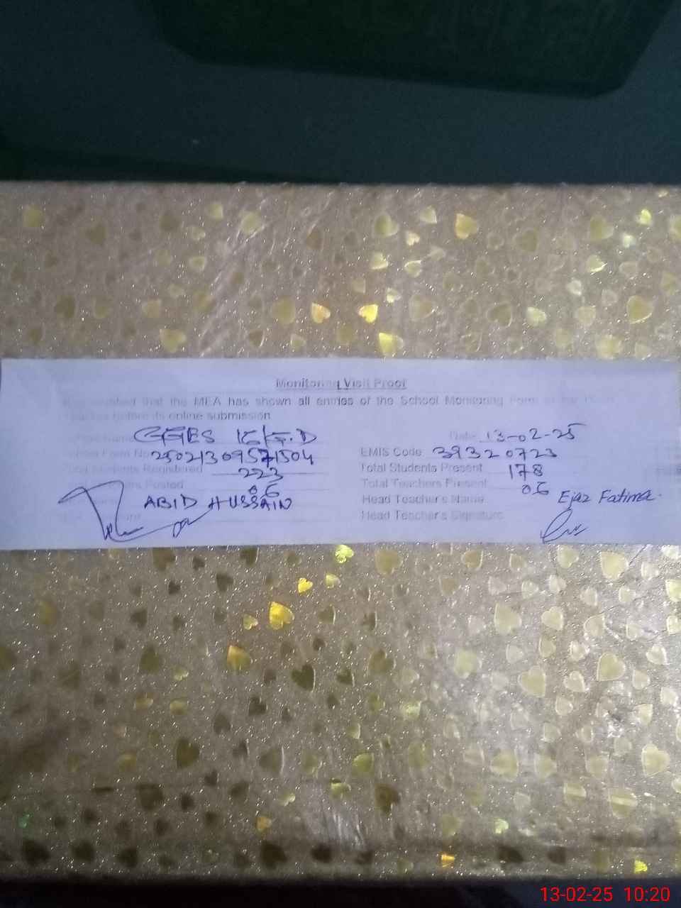 | EMIS Code: 39320723 | Name of School: GGES KHUSHI MUHAMMAD 16/G.D | |||