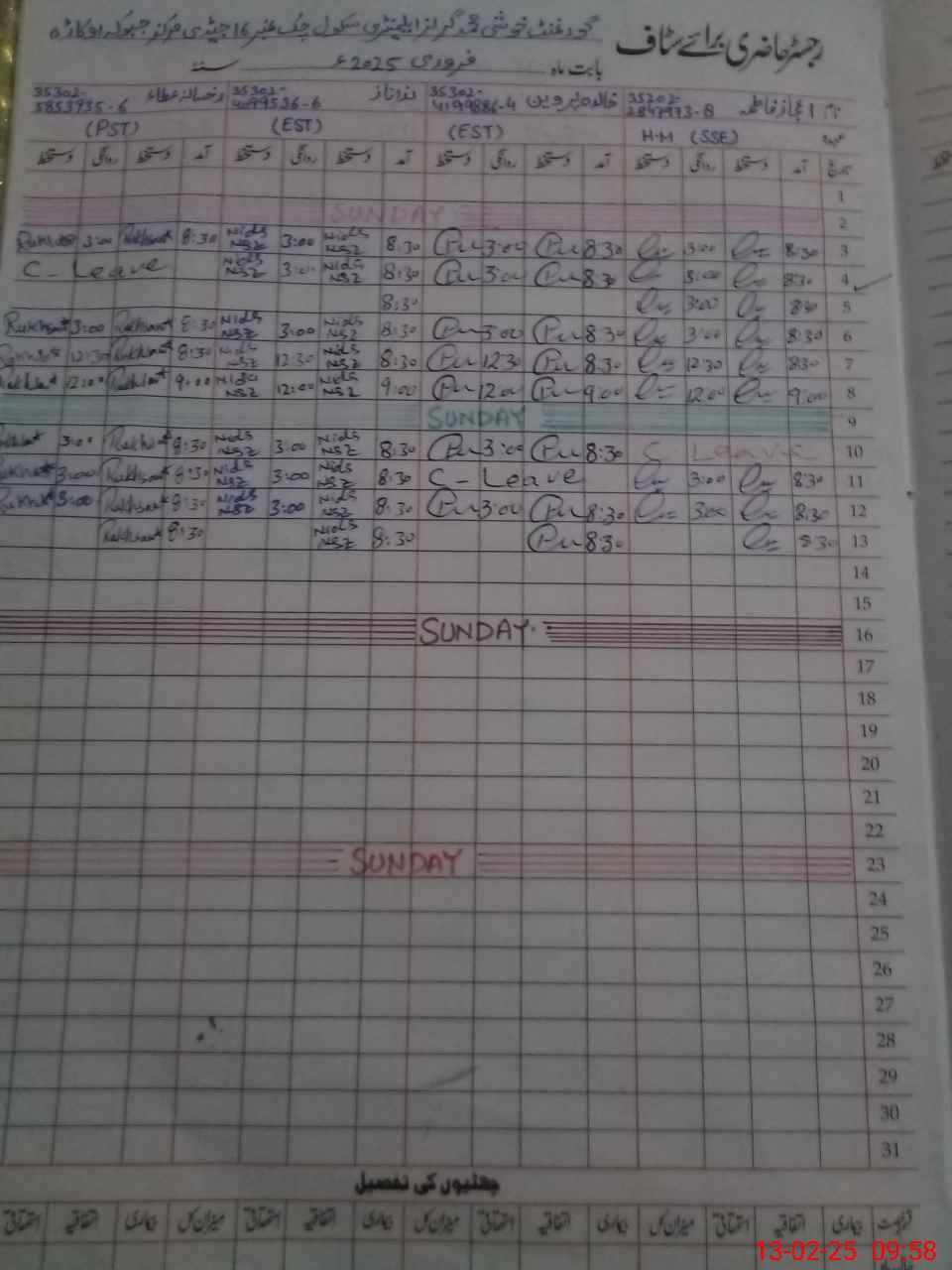 | 35**** | Gh**** Al**** | CHOKIDAR | 2 | 0 | 0 | 0 | 0 | 0 | 0 | 0 | 2 | Casual | |