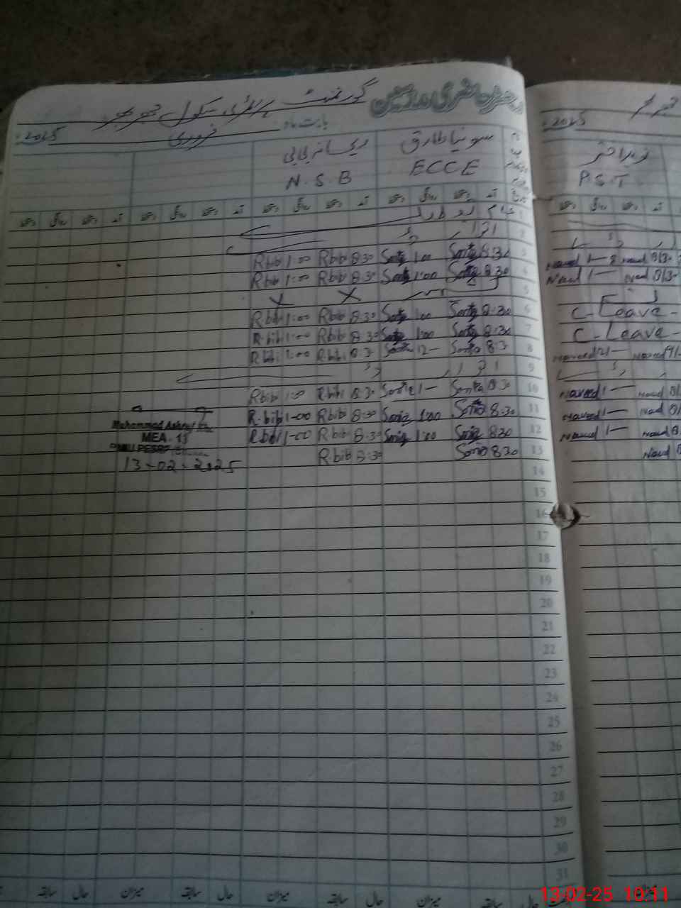 | CNIC | Full Name | Designation | R/C | Absence During Last Calender Month |