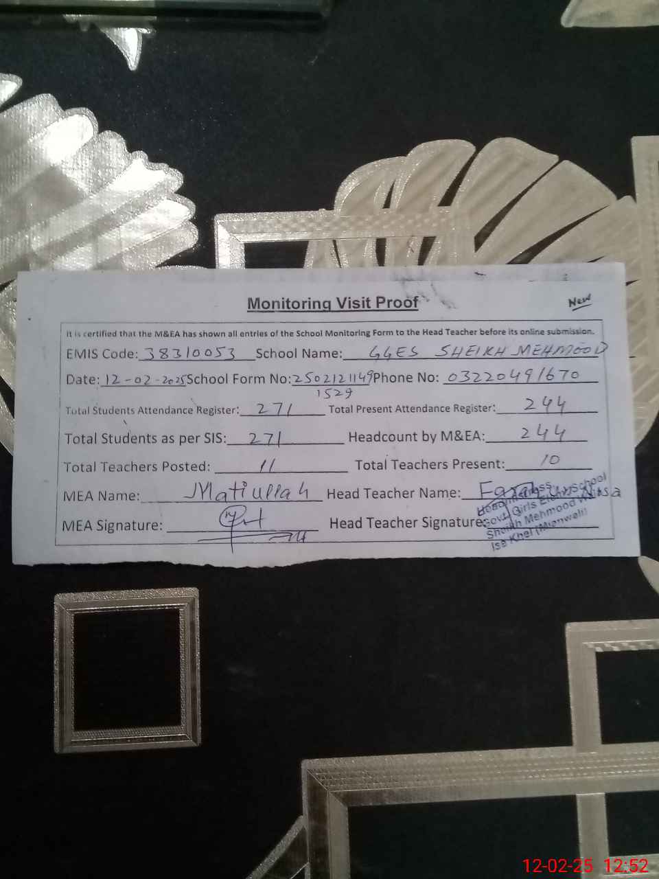| EMIS Code: 38310053 | Name of School: GGES SHEIKH MEHMOOD WALA | |||