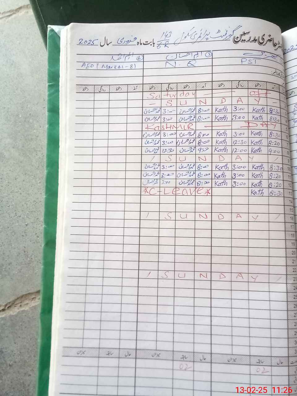 | Leave | Duty | Absent | Maternity | Medical | Ex- Pak |