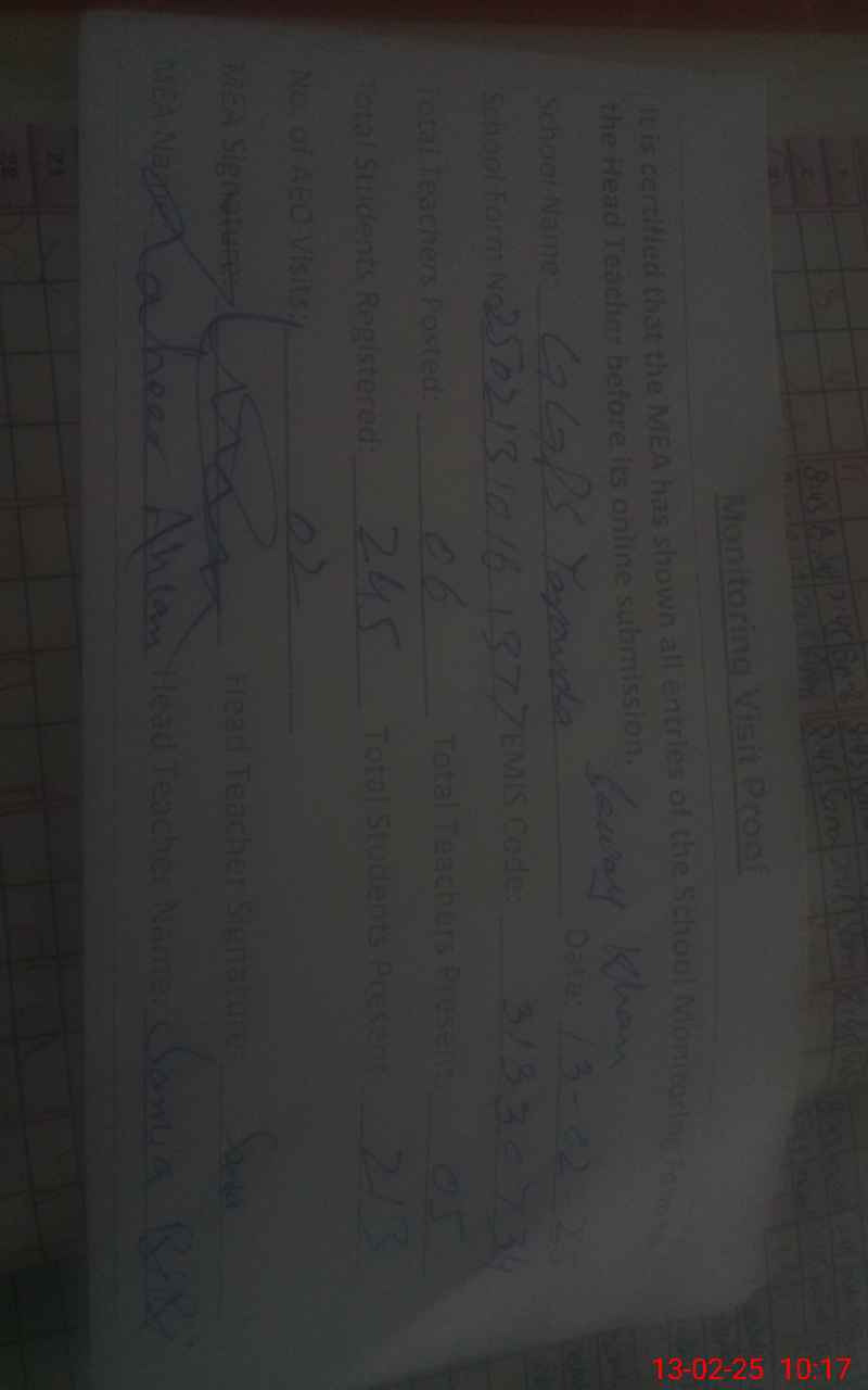 | Certified that this School was Inspected by the Undersigned MEA/DMO Today and the Information Stated Above is as Per Record. | |||||
