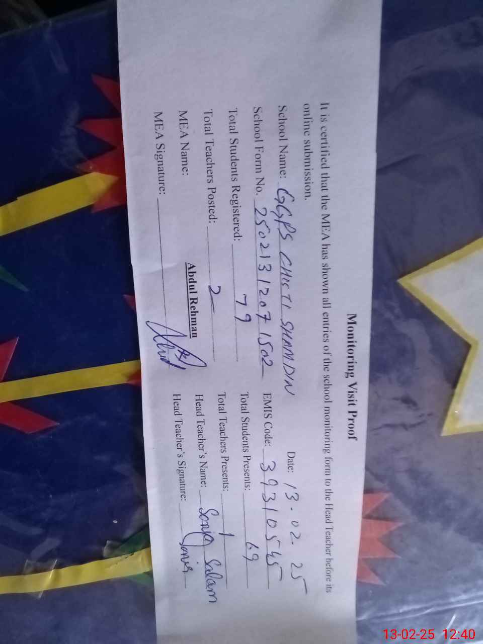 | EMIS Code: 39310545 | Name of School: GGPS CHISHTI SHAM DIN | |||