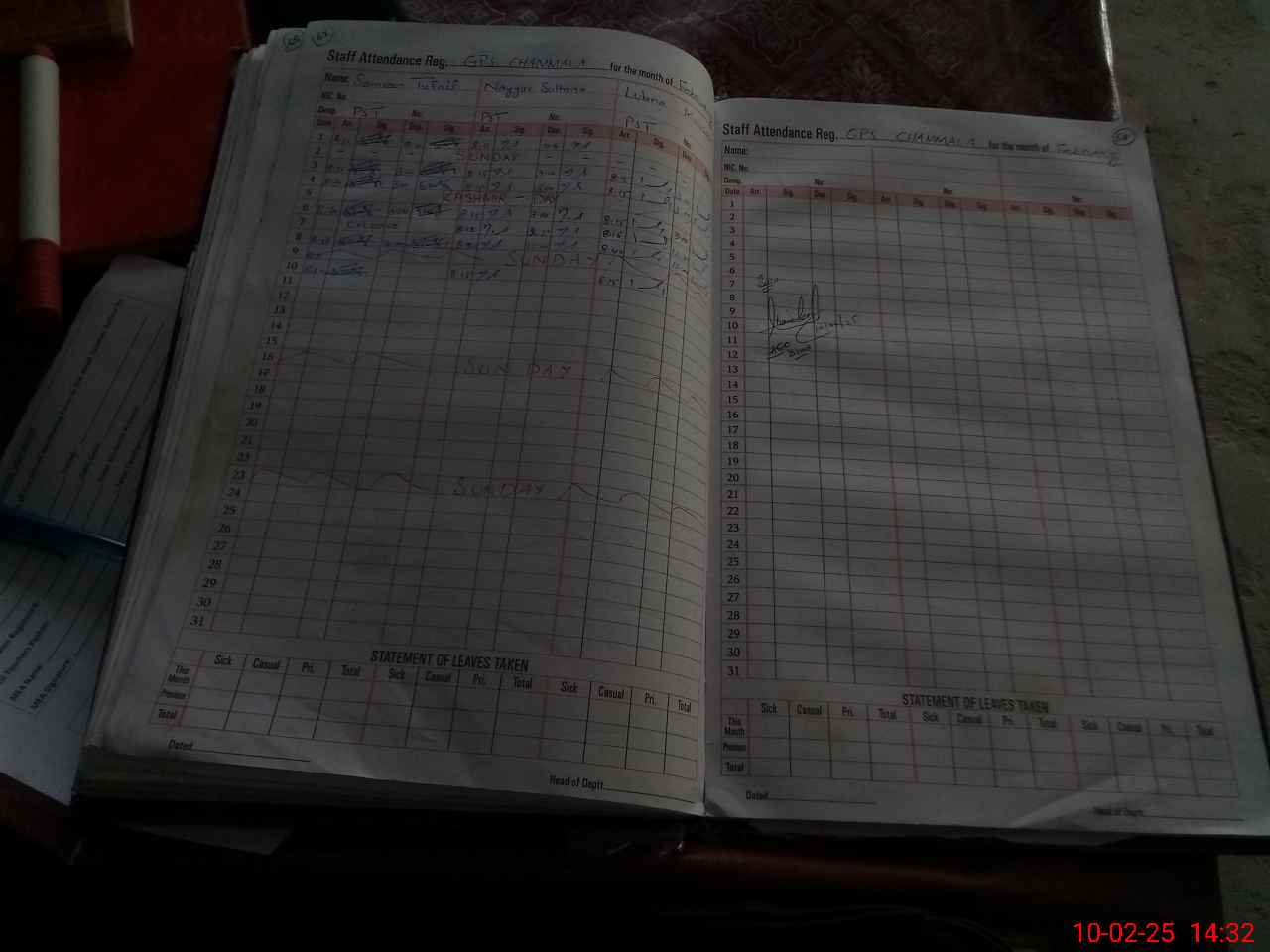 | Leave | Duty | Absent | Maternity | Medical | Ex- Pak |