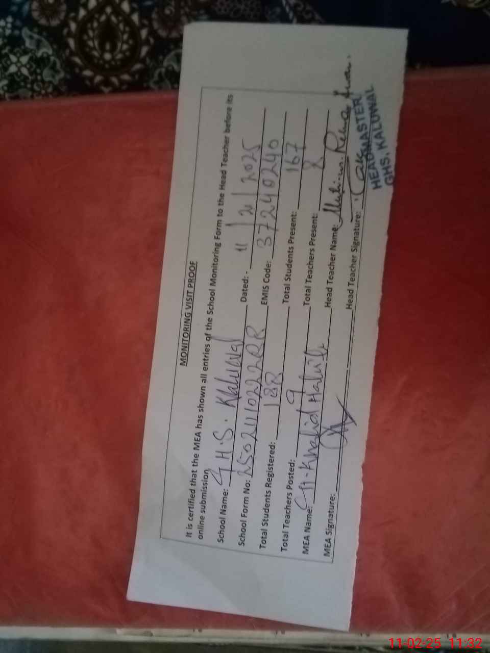 | EMIS Code: 37240240 | Name of School: GHS KALUWAL | |||