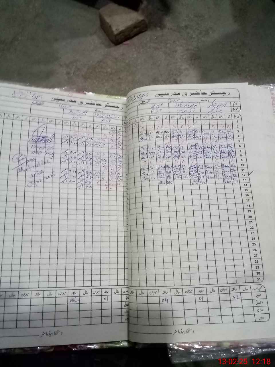 | Total no. of Classrooms: 7 No. of Classrooms Used for Teaching: 7 No. of Classrooms Storing Old Furniture, FTBs, etc: 0Comments if Any: PST ishtaiaq Ahmad Khan no recommend leave record soap not available at wash points toilets cleaning poor less Space for 259 students No cash book for NSB fund |
