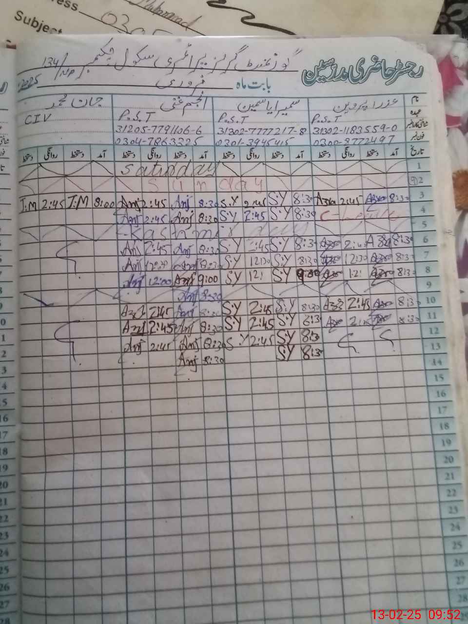 | Name: AZ**** PA**** Designation: (School Headmaster's/Headmistress's) PST/PTC/JV Phone/Cell Number: 03**** |