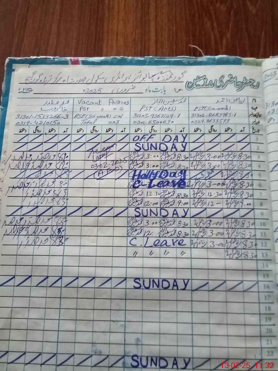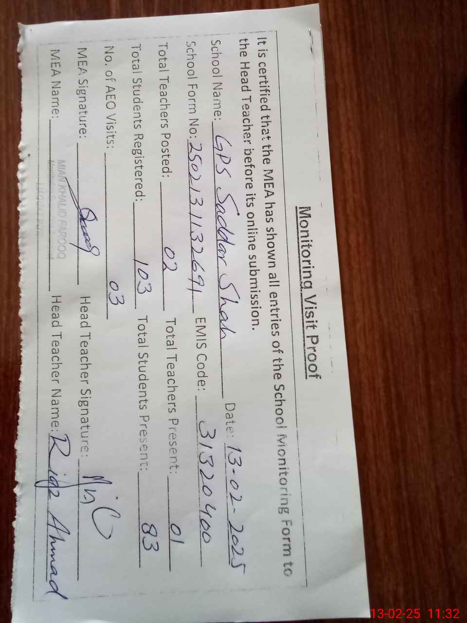 | EMIS Code: 31320400 | Name of School: GPS SADDAR SHAH | |||