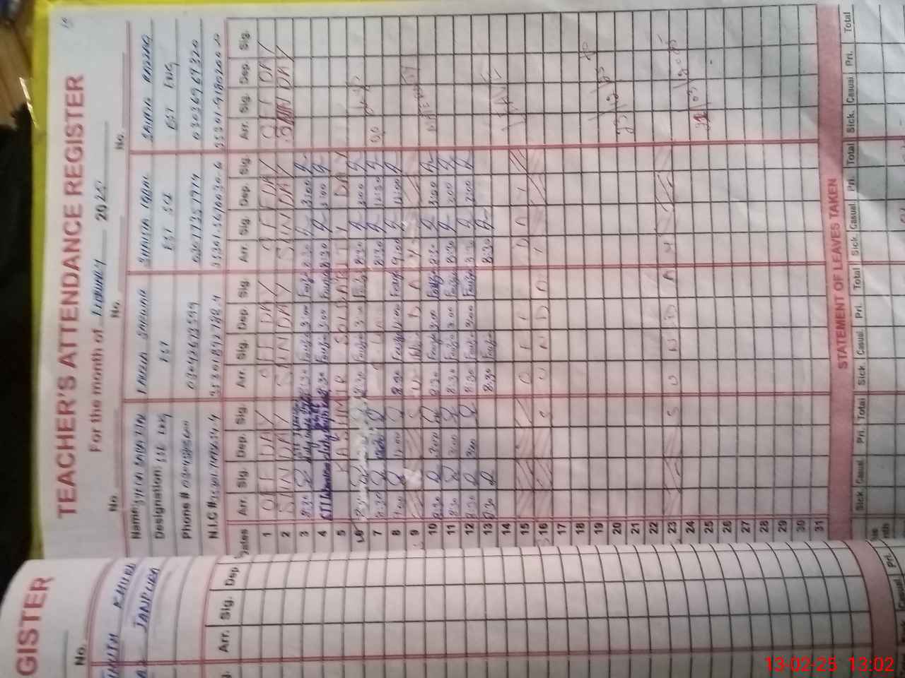 | Name: SY**** SA**** IJ**** Designation: (School Headmaster's/Headmistress's) SSE ENG Phone/Cell Number: 03**** |