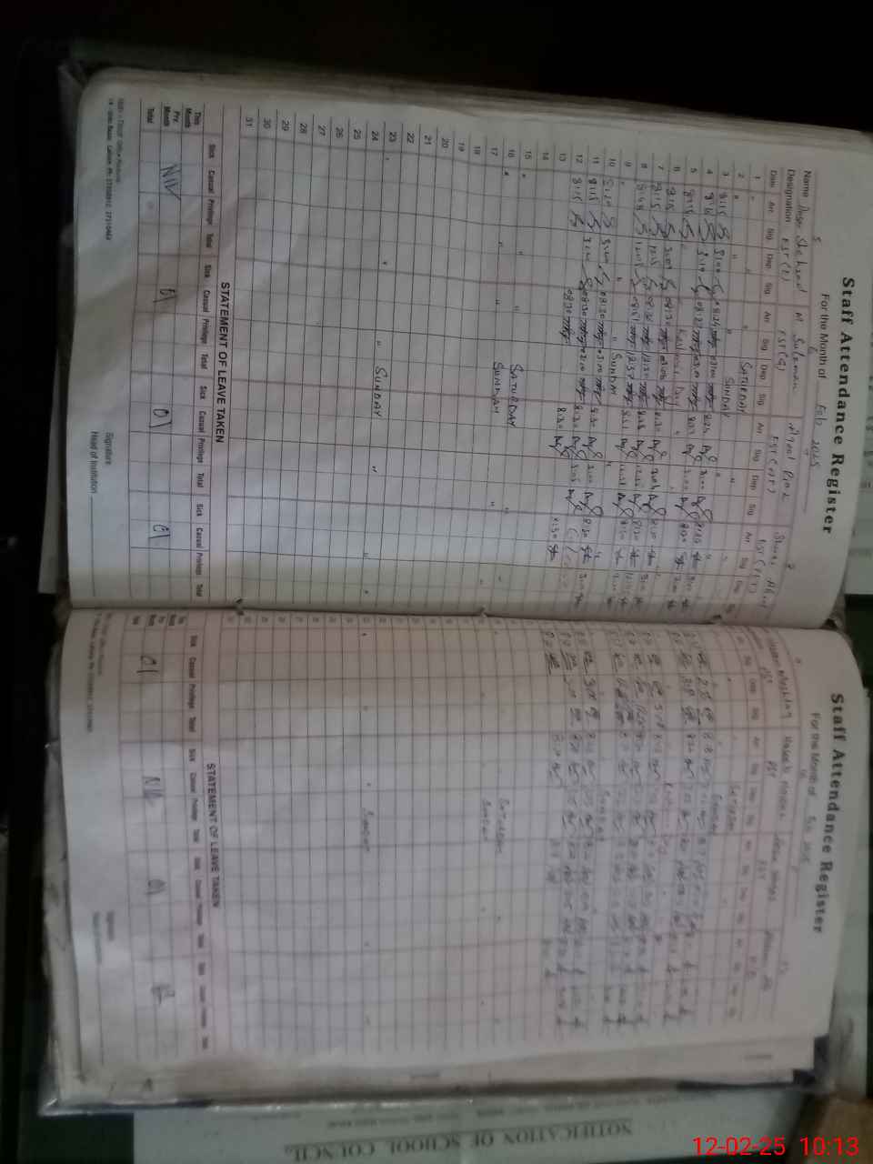 | Leave | Duty | Absent | Maternity | Medical | Ex- Pak |