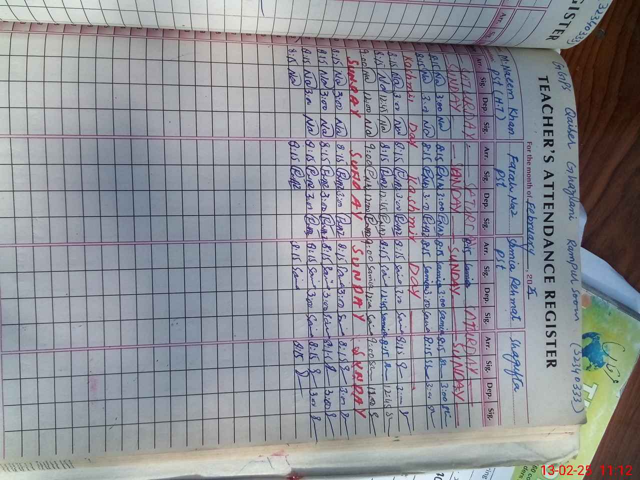 | CNIC | Full Name | Designation | R/C | Absence During Last Calender Month |