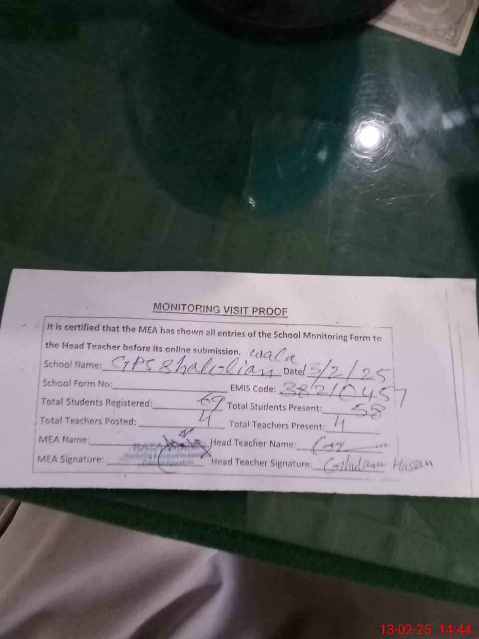 | EMIS Code: 38210457 | Name of School: GPS SHALOLIAN WALA | |||