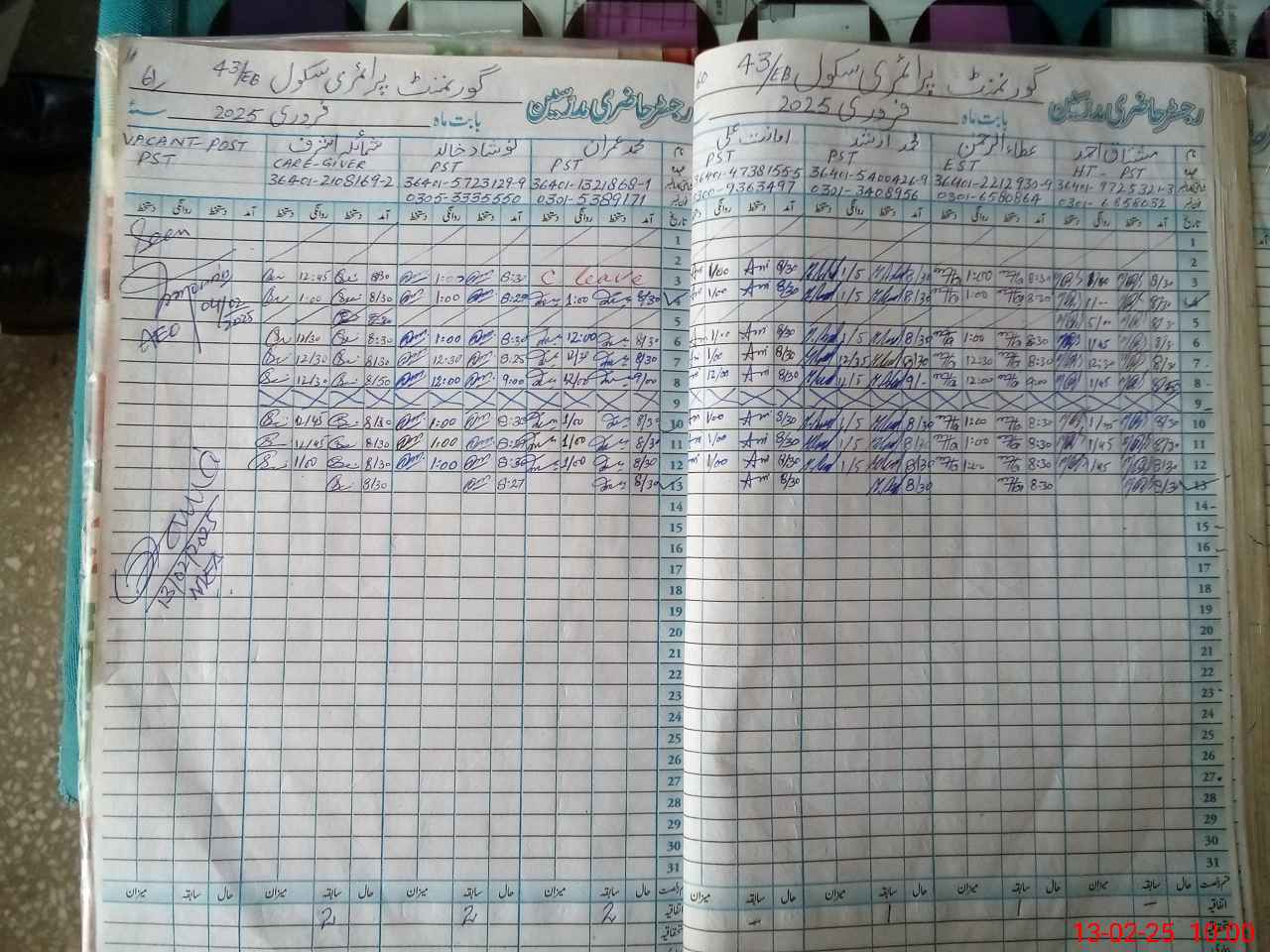 | Name: MAS**** AZ**** Designation: (School Headmaster's/Headmistress's) EST Phone/Cell Number: 03**** |