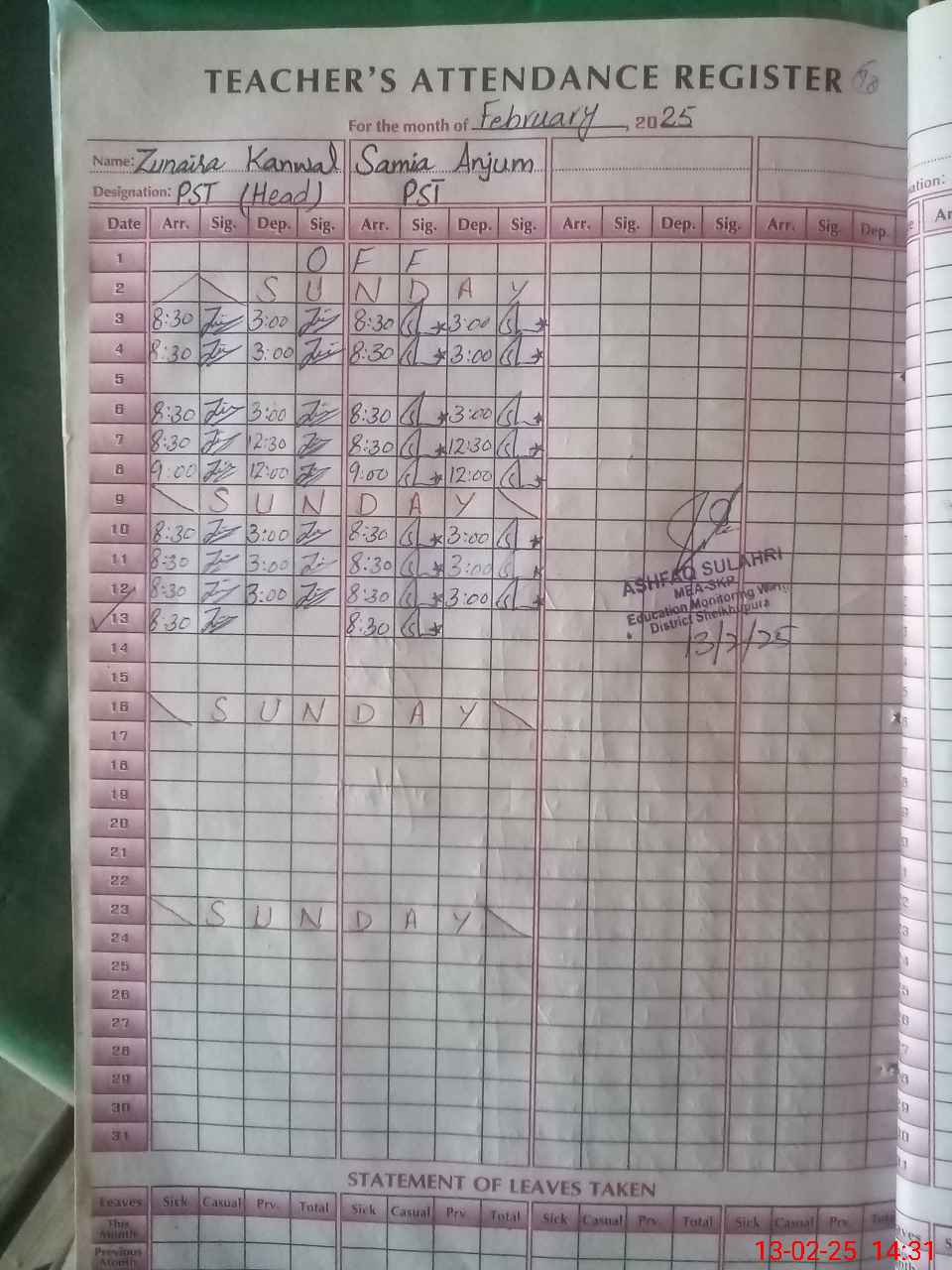 | Name: ZU**** KA**** Designation: (School Headmaster's/Headmistress's) PST Phone/Cell Number: 03**** |