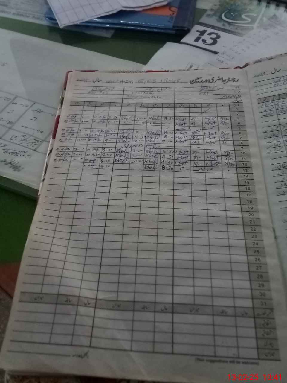 | CNIC | Full Name | Designation | R/C | Absence During Last Calender Month |