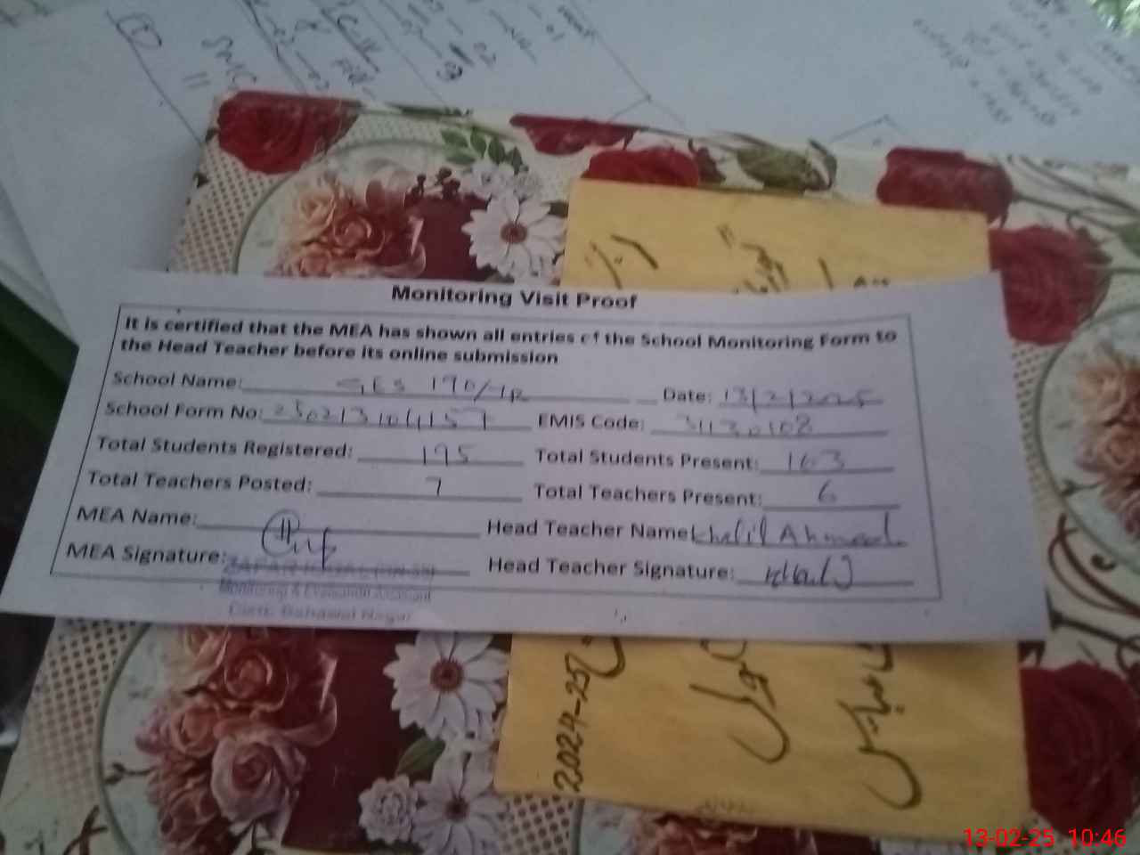 | EMIS Code: 31130108 | Name of School: GHS CHAK NO.190/7-R | |||