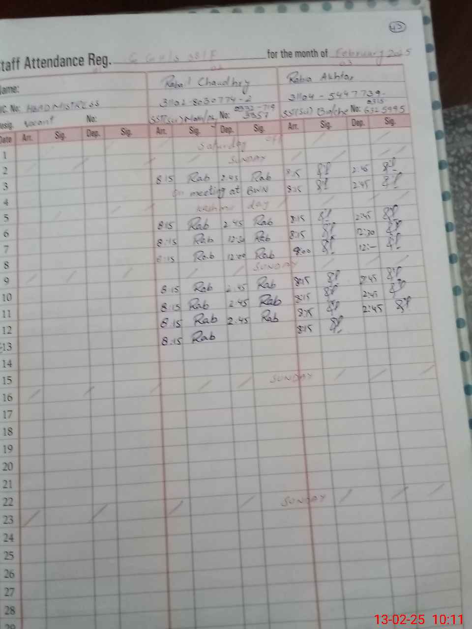 | Name: RA**** AK**** Designation: (School Headmaster's/Headmistress's) SST INCH Phone/Cell Number: 03**** |