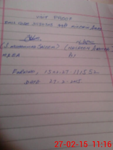 | Monitoring Date: 27-02-2015 | Start Time: 27-02-2015 10:23 AM | End Time: 27-02-2015 11:20 AM | Name of MEA: Mu**** Sa**** BN**** 33 | |