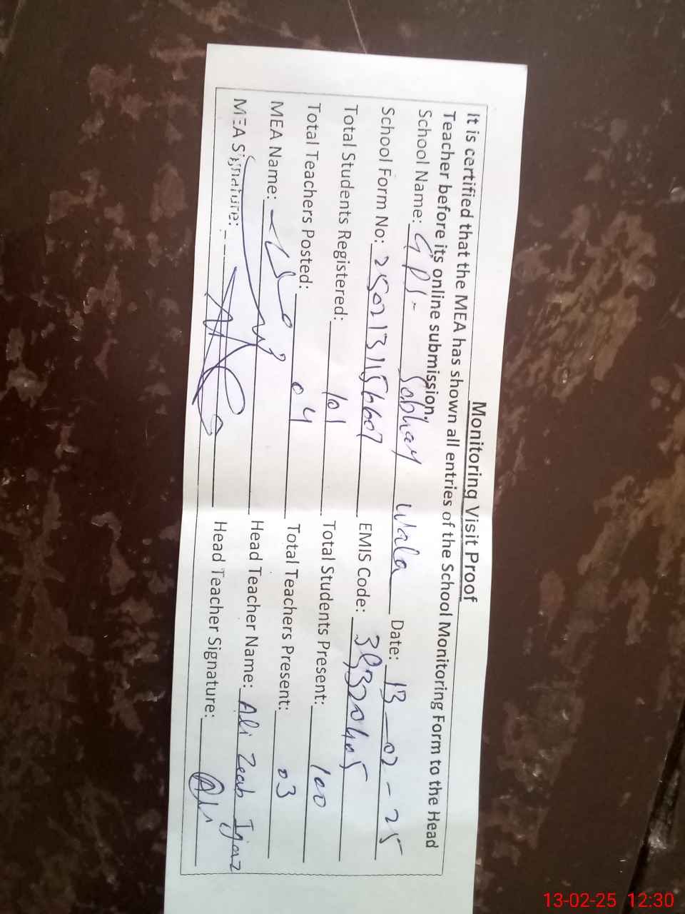 | EMIS Code: 39320405 | Name of School: GPS BASTI SOBHEY WALA | |||