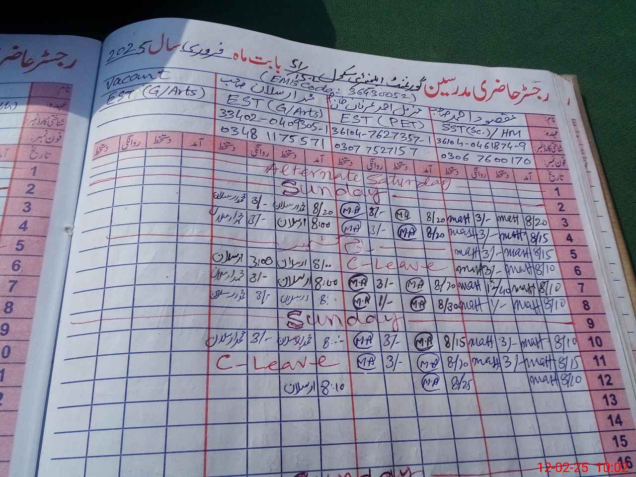 | EMIS Code: 36430052 | Name of School: GES 51/15-L, MIAN CHANNU | |||