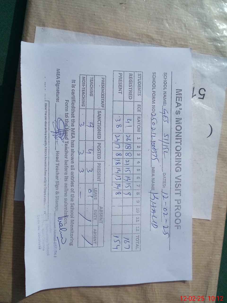 | Certified that this School was Inspected by the Undersigned MEA/DMO Today and the Information Stated Above is as Per Record. | |||||