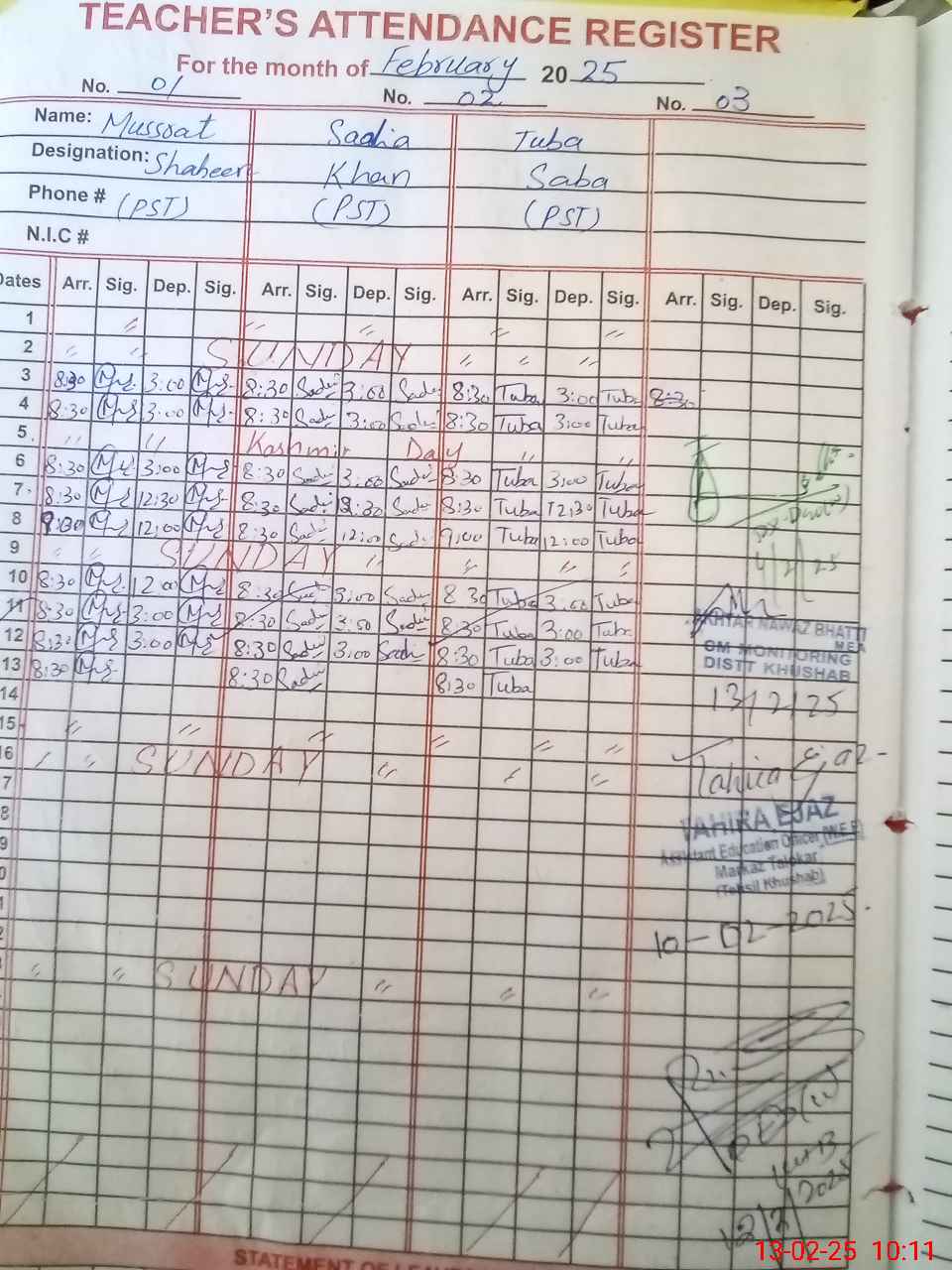 | Name: Mu**** Sh**** Designation: (School Headmaster's/Headmistress's) PST Phone/Cell Number: 03**** |