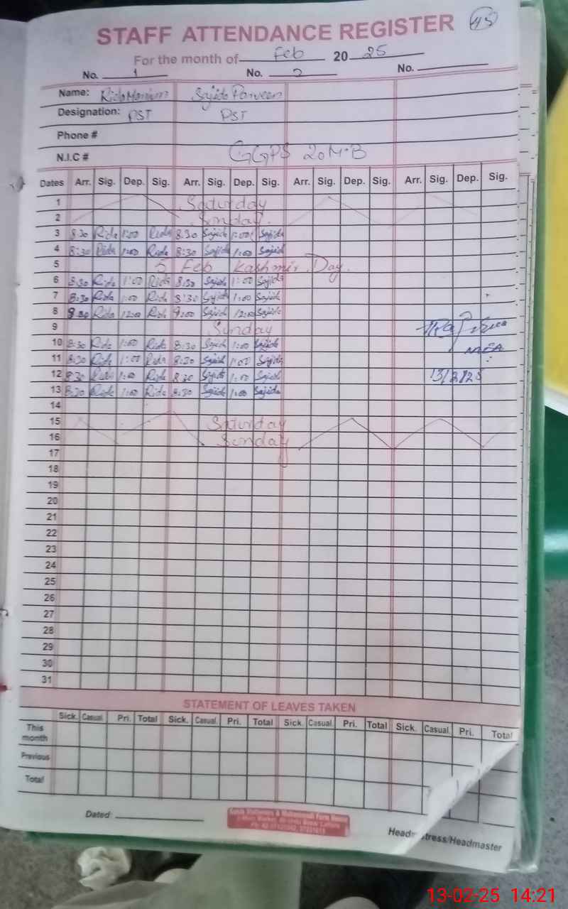 | Name: Sa**** Pa**** Designation: (School Headmaster's/Headmistress's) PST Phone/Cell Number: 03**** |