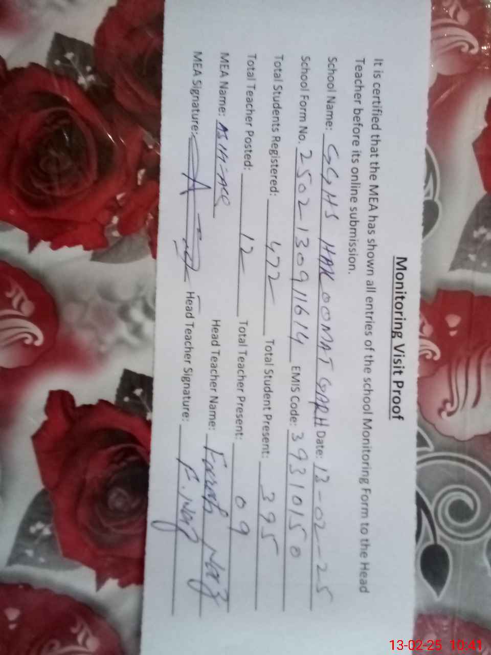| EMIS Code: 39310150 | Name of School: GGHS HAKOOMAT GARH | |||