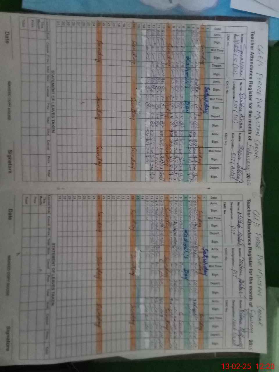 | CNIC | Full Name | Designation | R/C | Absence During Last Calender Month |