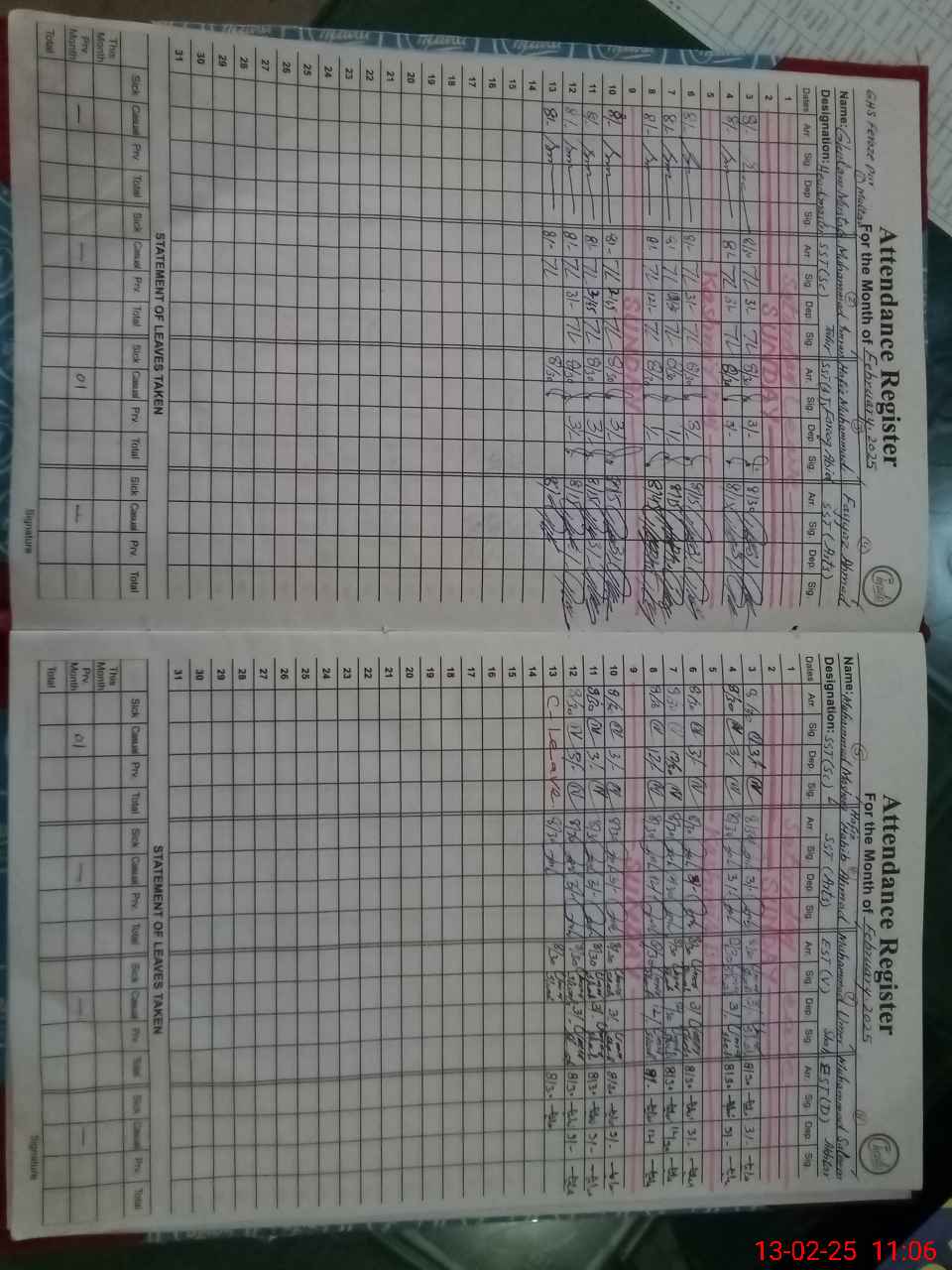 | Remarks (Use Separate Page if Required): PST AMJAD HUSSAIN MARKED PRESENT BUT NOT PRESENT IN SCHOOL STUDENTS ATTENDANCE LIST OF PREVIOUS SESSION ONE STUDENT STRENGTH DIFFERENCE IN BETWEEN SIS ROZNAMCHA AND STUDENTS ATTENDANCE REGISTERS | |||||