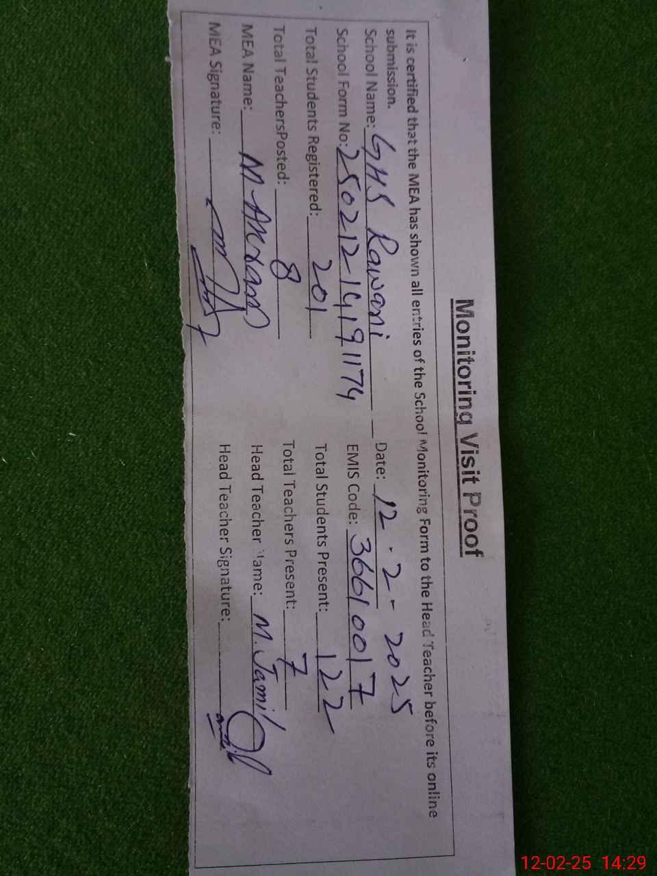 | EMIS Code: 36610017 | Name of School: GHS RAWANI | |||