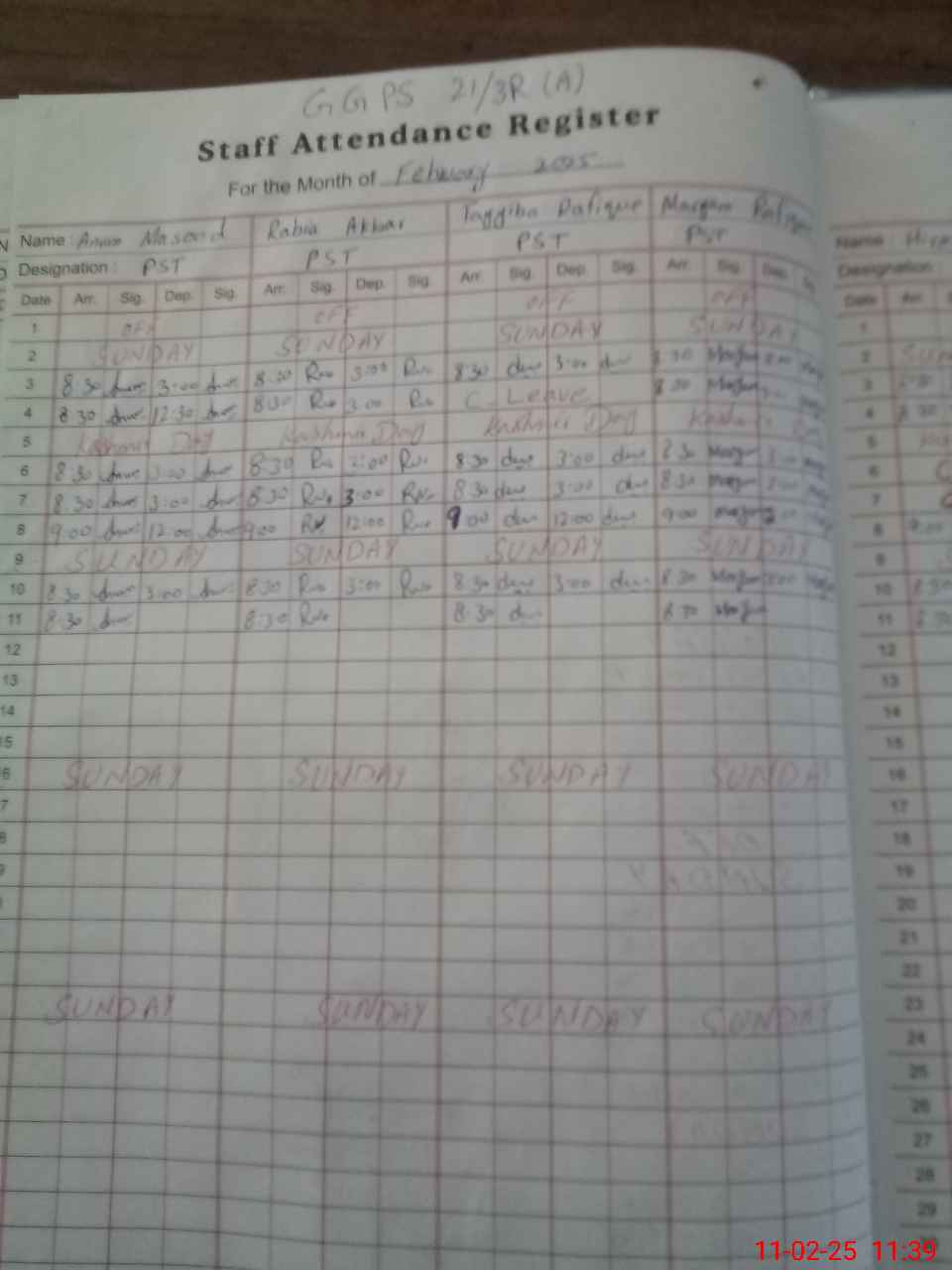 | CNIC | Full Name | Designation | R/C | Absence During Last Calender Month |