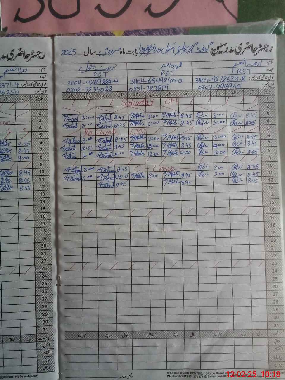 | CNIC | Full Name | Designation | R/C | Absence During Last Calender Month |