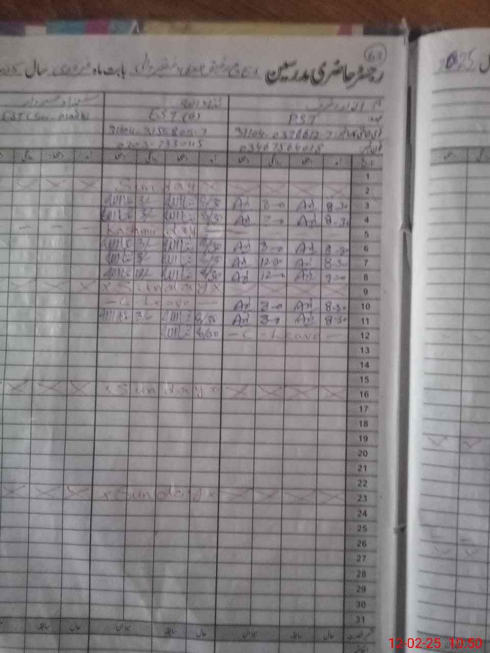 | CNIC | Full Name | Designation | R/C | Absence During Last Calender Month |