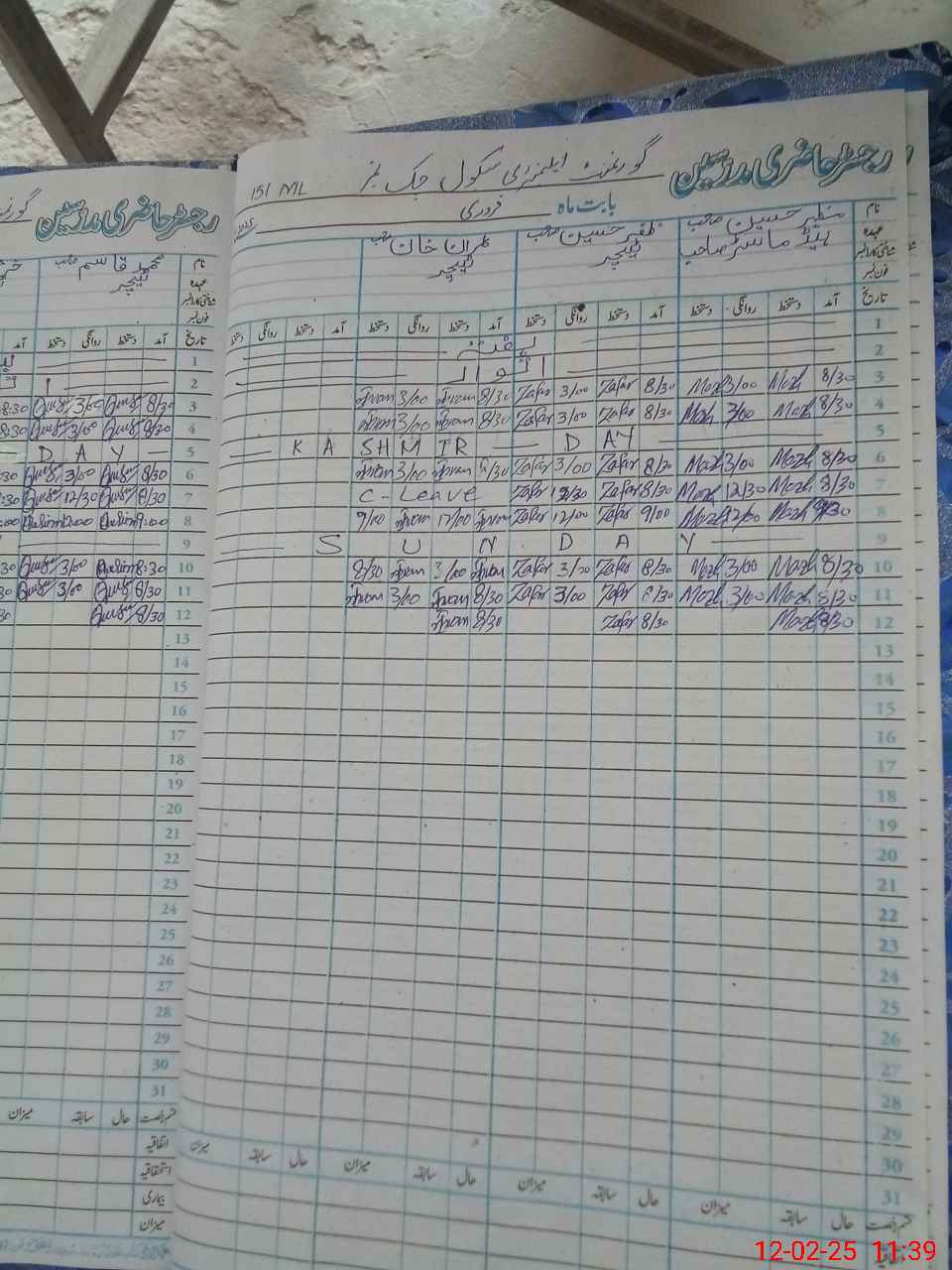 | CNIC | Full Name | Designation | R/C | Absence During Last Calender Month |
