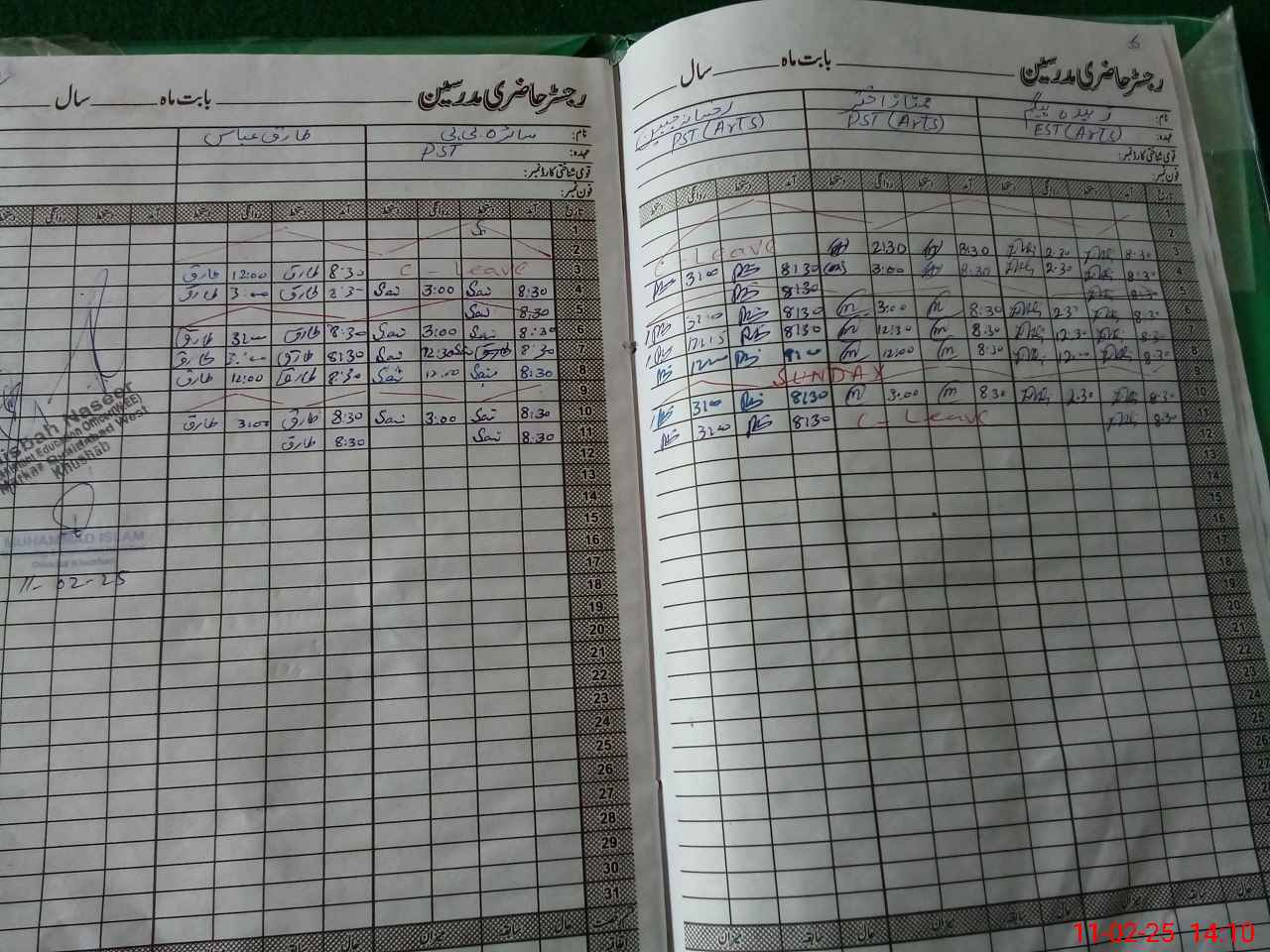 | CNIC | Full Name | Designation | R/C | Absence During Last Calender Month |