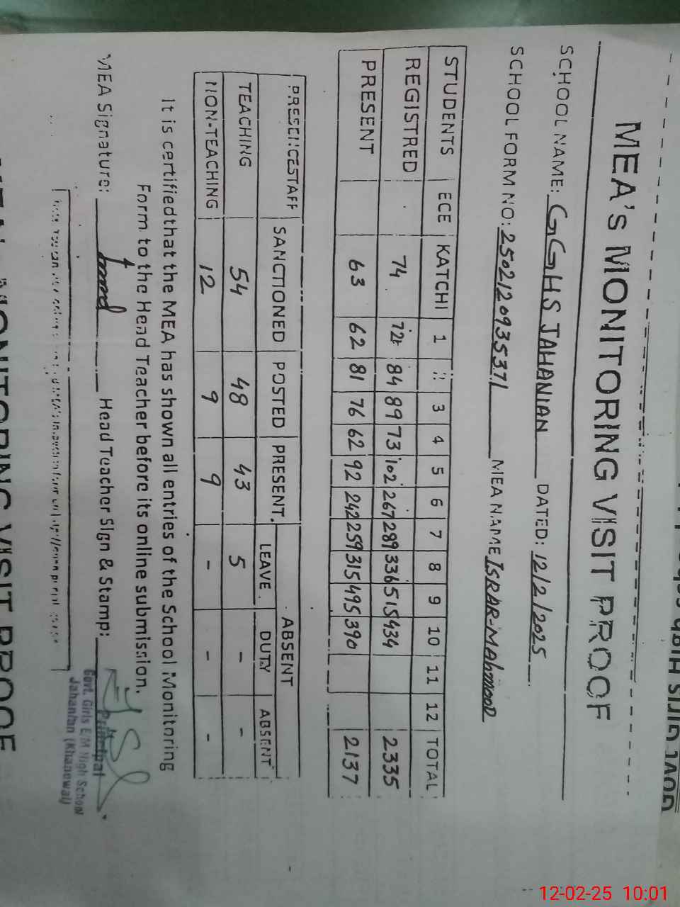 | EMIS Code: 36440055 | Name of School: GGHS JAHANIAN, JAHANIAN | |||