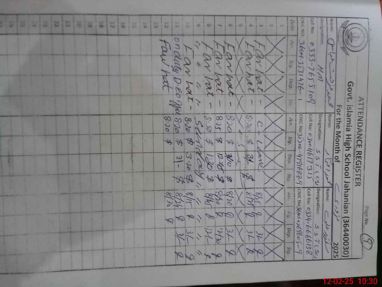 | CNIC | Full Name | Designation | R/C | Absence during last cal. month |