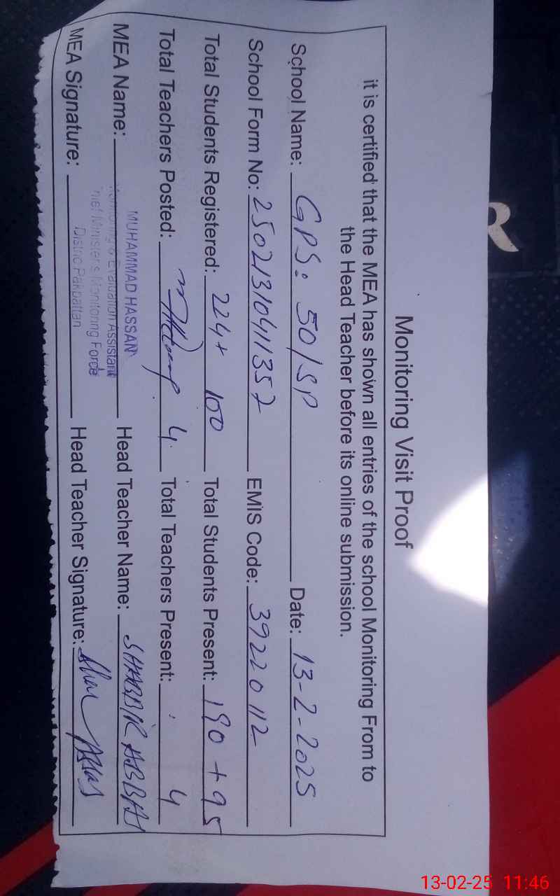 | EMIS Code: 39220112 | Name of School: GPS 50 SP | |||