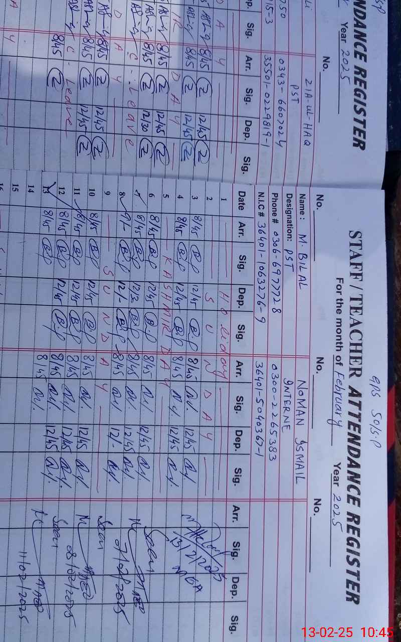 | Name: SH**** AB**** Designation: (School Headmaster's/Headmistress's) PST Phone/Cell Number: 03**** |