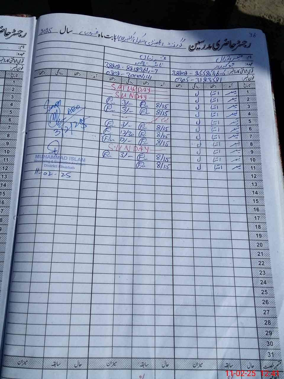 | Name: Fa**** Hu**** Designation: (School Headmaster's/Headmistress's) SST Phone/Cell Number: 03**** |