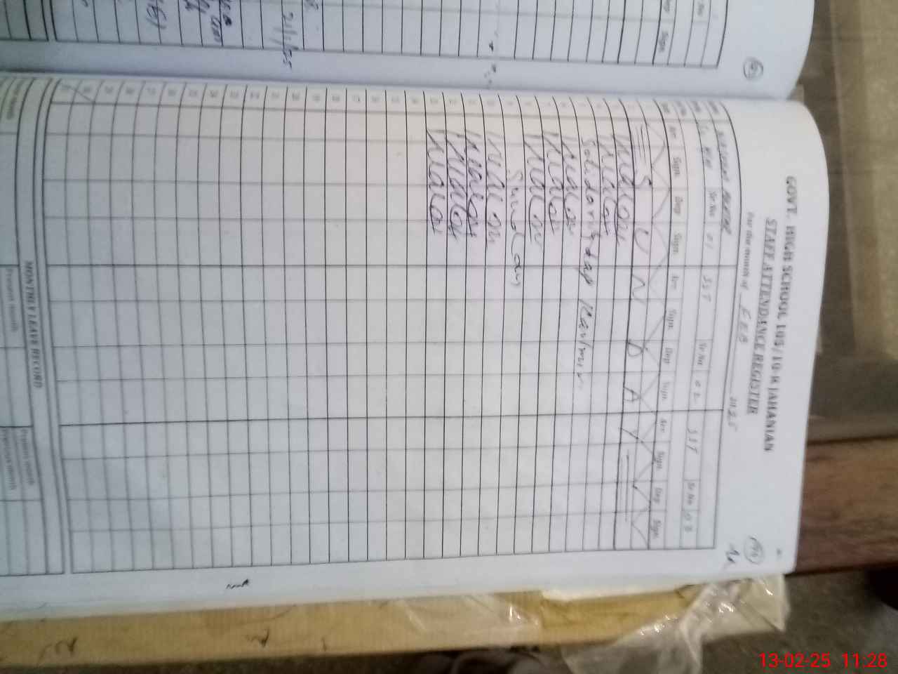 | CNIC | Full Name | Designation | R/C | Absence During Last Calender Month |