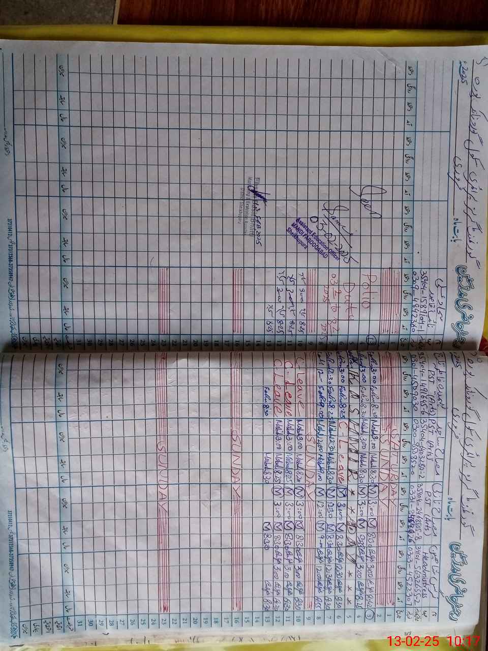 | CNIC | Full Name | Designation | R/C | Absence During Last Calender Month |